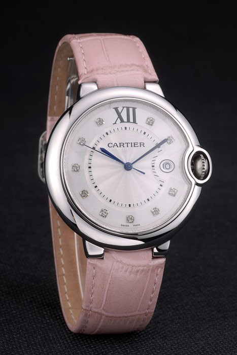 Im Inneren der Uhr arbeitet ein präzises Quarzwerk von Schweiz ETA, das für eine verlässliche Zeitmessung mit Batterie sorgt. Das kratzfeste Glas aus Crystal schützt das elegante Zifferblatt, während das Armband aus rosa Krokodilleder mit einem polierten Edelstahl-Einfaltverschluss die Uhr sicher und komfortabel am Handgelenk fixiert. Mit einer Armbandlänge von 195 x 20 mm bietet es optimalen Tragekomfort und unterstreicht den luxuriösen Charakter dieser Replica Cartier Watches. Die harmonische Kombination aus Material und Design macht dieses Modell zur idealen Wahl für Liebhaberinnen von „fake cartier watches“, die stilvolle und erschwingliche Alternativen suchen.