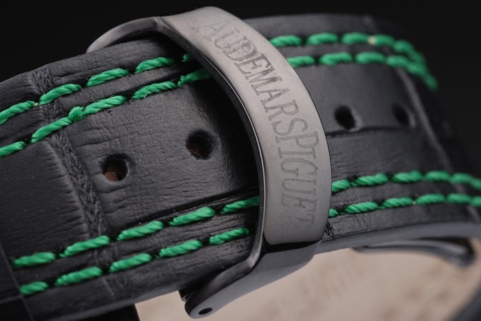 Armband ionenplattiert: Hitze Audemars Piguet schwarzem Krokolederarmband mit Doppelnaht und grün geprägt Audemars Piguet graviert ionenplattiert Einfalt-clasp