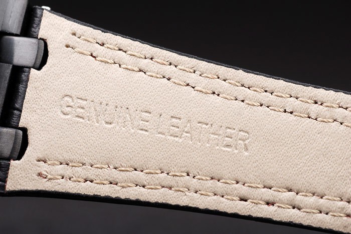 Armband ionenplattiert: Hitze Audemars Piguet schwarzem Krokolederarmband mit Doppel roten Nähten geprägt und Audemars Piguet graviert-Ionen-plattiert Einfalt-clasp