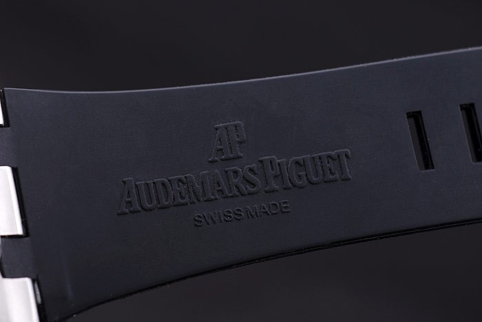 Armband: Schwarzes Kautschukband mit Hitze geprägt Audemars Piguet Royal Oak Offshore Stempel und einer Audemars Piguet bezeichnet ionenplattiert Hakenschnalle clasp