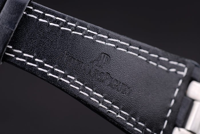 Armband: Hitze geprägt Audemars Piguet Swiss Made Logo und schwarzem Lederband mit Doppel-weißen Nähfaden und Audemars Piguet Edelstahlhaken-Schnalle clasp