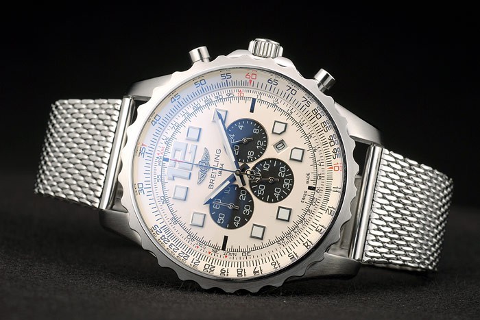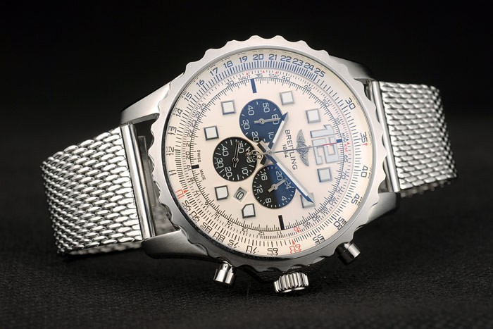 Krone: Edelstahl poliert cutwork Krone mit Breitling-logo und zwei kleine runde Druckknopf Kronen auf beiden Seiten des it