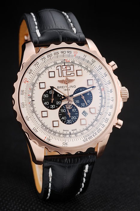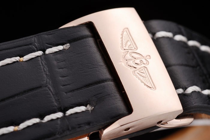 Armband: Hitze geprägt Breitling Name und das Logo schwarzes Krokodillederband mit weißen Faden stiching und Logogravur Rosen vergoldet klappbare in clasp