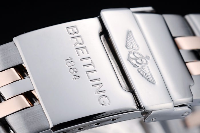 Armband: Edelstahl poliert und Rosen -Gold plattierten Gliederarmband mit Breitling 1884 und logo graviert Einfalt-Druckknopf clasp
