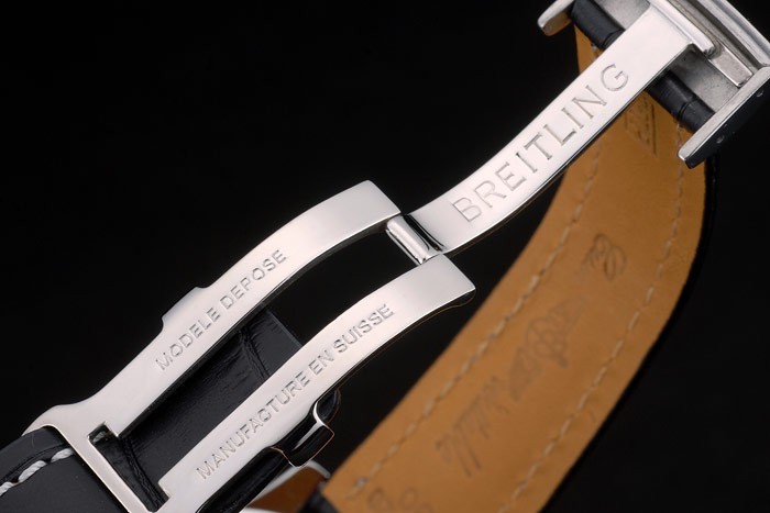 Armband: Breitling Hitze geprägt schwarzem Krokolederarmband mit weißen Fadenheftung und Logo graviert poliertem Edelstahl Einfalt-clasp