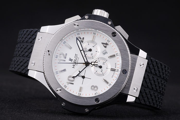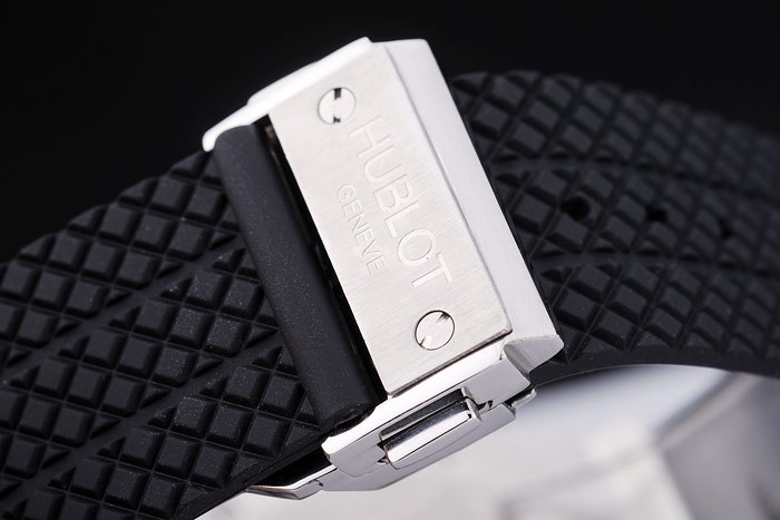 Armband: Wärme geprägtes Logo und Hublot Geneve texturierten schwarzen Kautschukarmband mit Hublot Geneve gravierte Edelstahl Überfaltposition Push -release Haken clasp