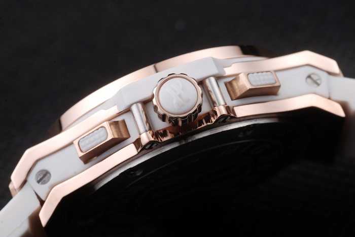Armband: strukturierten weißen Gummiband mit Rose-Gold Druckknopfhakenverschluss und Hublot engravings