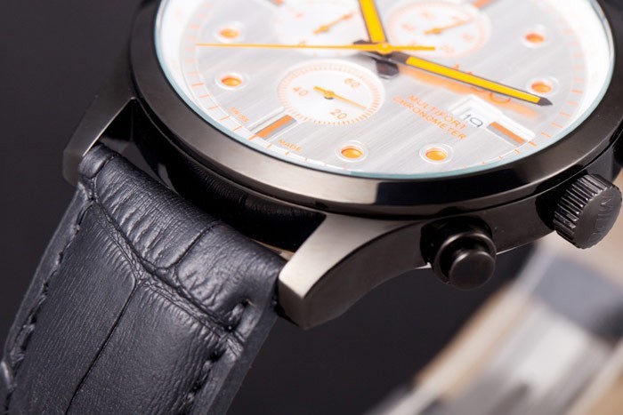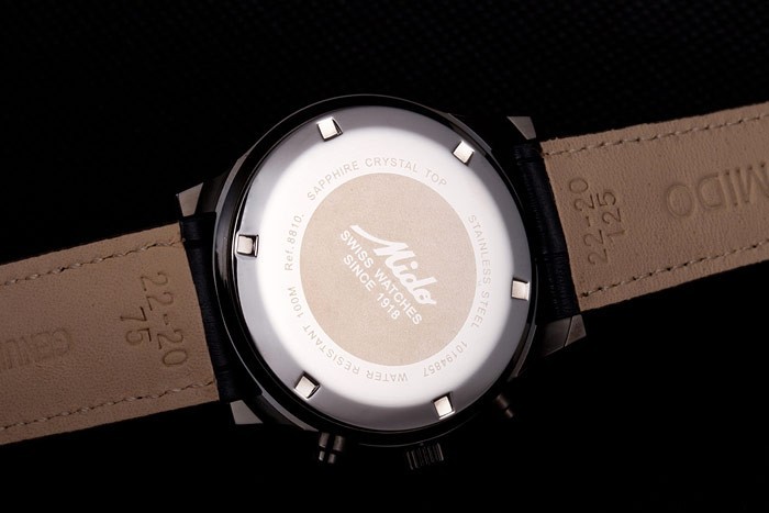 Schreiben Sie die erste Bewertung für „Mido Multifort Schwarz Krokolederband orange Details Haupt 80289“