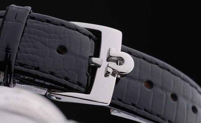 Armband: Patent schwarze Schlange Lederband mit Hitze geprägt Omega Stempel und dick Omega hervorgehoben Logo Haken-Schnalle aus rostfreiem clasp