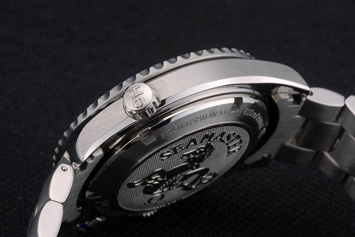 Zurück: Edelstahl poliert Snap-In Rückseite mit Omega-Logo und Seamaster Planet Ocean engravings