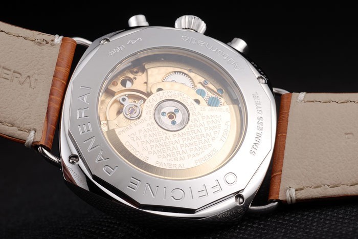 Rückseite: Edelstahl umrandeten transparent verschraubt Rücken mit Panerai Gravur