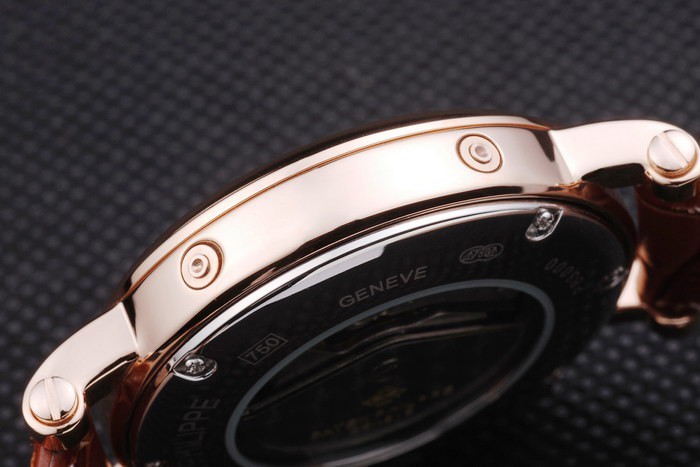 Krone: Rose Goldkrone mit Patek Logogravur und zwei kleinere Kronen auf entweder side