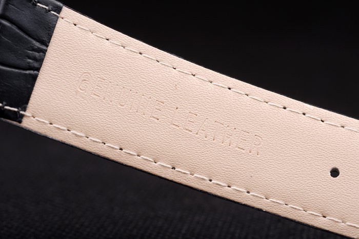 Armband: Schwarz Krokodillederband mit Wärme geprägt Patek Philippe Stempel und poliertem Edelstahl Haken-Schließe mit Patek Philippe engraving