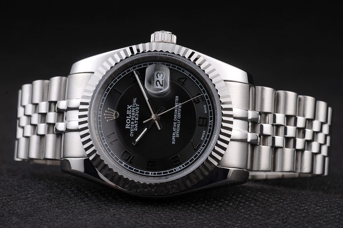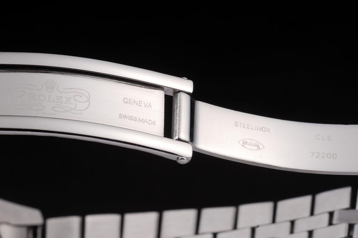 Armband: geschliffener und polierter Edelstahl-Gliederarmband mit Rolex graviert versteckte Spange die Rolex logo