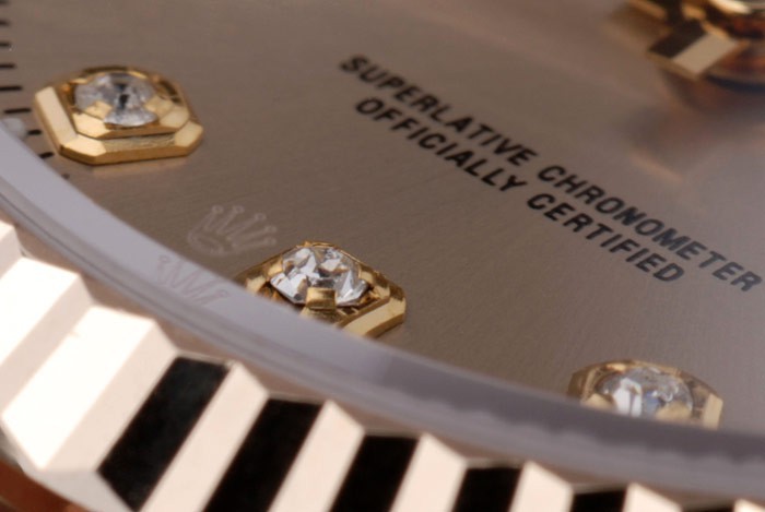 Rückseite: Edelstahl Push-Gehäuseboden mit grünen Rolex-Logo stamp