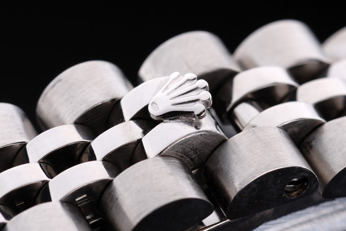 Armband: geschliffener und polierter Edelstahl Armband mit Rolex Gravur versteckte Spange die Rolex logo