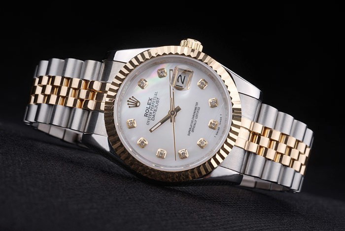 Armband: Zwei getönten Gliederarmband aus poliertem Edelstahl und 18 Karat Gelbgold überzogenem Stahl mit Rolex Gravur versteckte Spange Anzeigen der Rolex logo