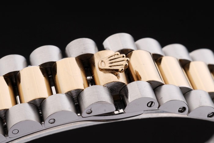 Armband: Edelstahl gebürstet und Gelbgold Gliederkette mit Druckverschluss und Rolex Krone engraving