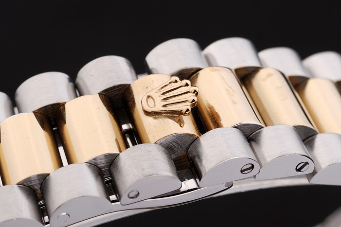 Armband: Edelstahl gebürstet und Gelbgold Gliederkette mit Druckverschluss und Rolex Krone engraving