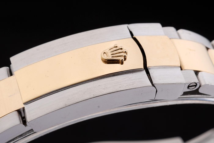 Armband: Edelstahl gebürstet und Gelbgold Gliederkette mit Druckverschluss und Rolex Krone engraving