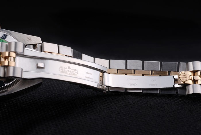 Rückseite: Edelstahl Push-Gehäuseboden mit grünen Rolex-Logo stamp