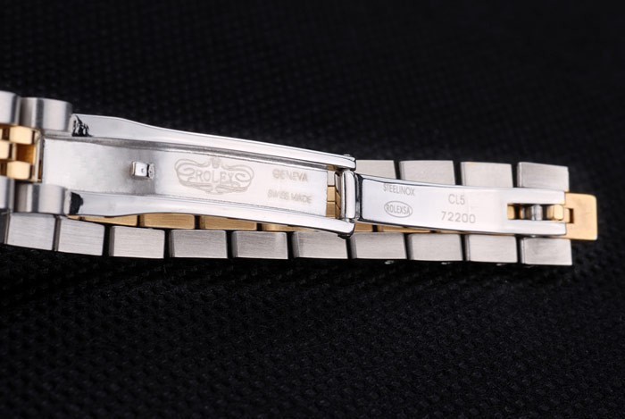 Armband: Zwei getönten Gliederarmband aus gebürstetem Edelstahl und 18 Karat Gelbgold überzogenem Stahl mit Rolex Gravur versteckte Spange Anzeigen der Rolex logo
