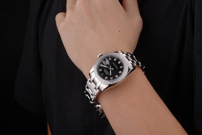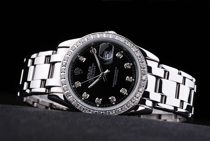 Armband: Edelstahl poliert Phantasie Gliederarmband mit Rolex Gravur falten Verschluss Rolex logo