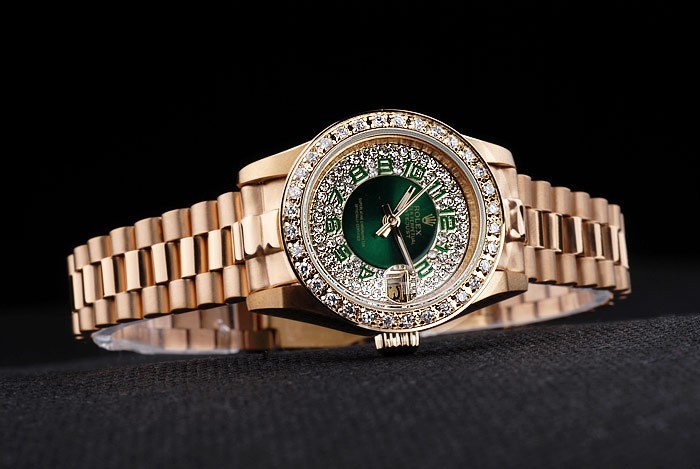 Zurück: 18K Gelbgold überzogenes Edelstahl-Steckgehäuseboden mit grünen Rolex-Logo stamp