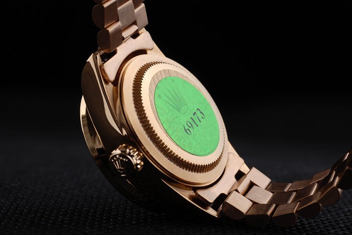 Zurück: 18K Gelbgold überzogenes Edelstahl-Steckgehäuseboden mit grünen Rolex-Logo stamp