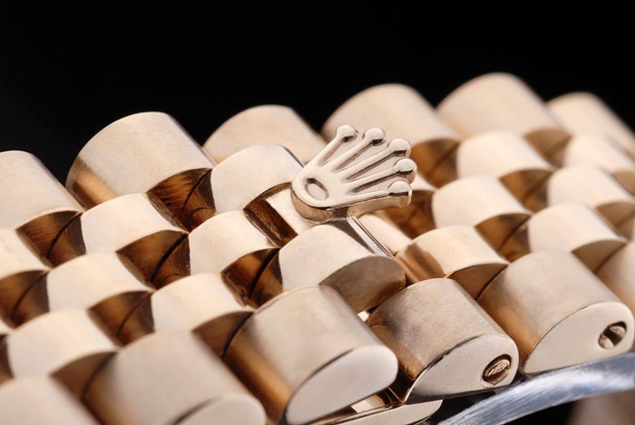 Armband plattiert: 18 Karat Gelbgold mit Rolex Edelstahl-Glieder Armband vergoldet Gravur versteckte Spange die Rolex logo