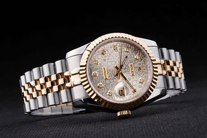 Armband: Zwei getönten Gliederarmband aus gebürstetem Edelstahl und 18 Karat Gelbgold überzogenem Stahl mit Rolex Gravur versteckte Spange Anzeigen der Rolex logo