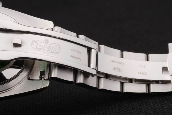 Back Bewegung: Push-in Edelstahl zurück mit grünen Rolex Aufkleber und markings