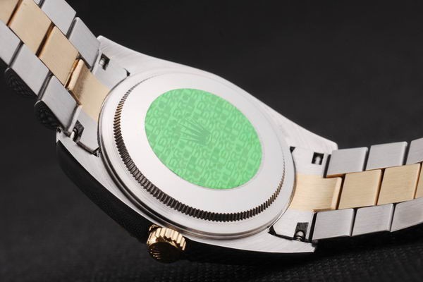 Back: Push-in Edelstahl zurück mit grünen Rolex Aufkleber und markings
