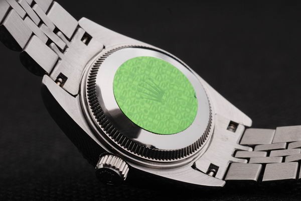 1Back: Push-in Edelstahl zurück mit grünen Rolex Aufkleber und markings