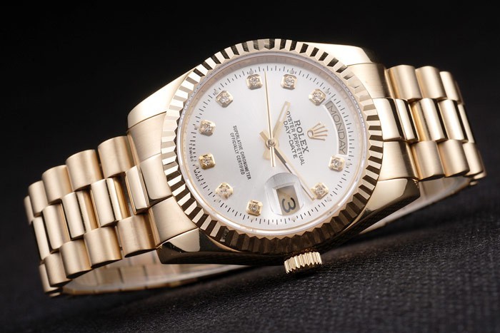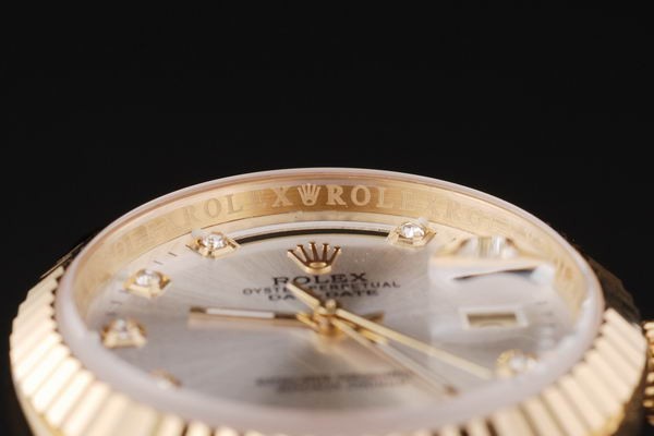 Back: in 18 Karat Gelbgold mit grünen Rolex Aufkleber nach hinten schieben und markings