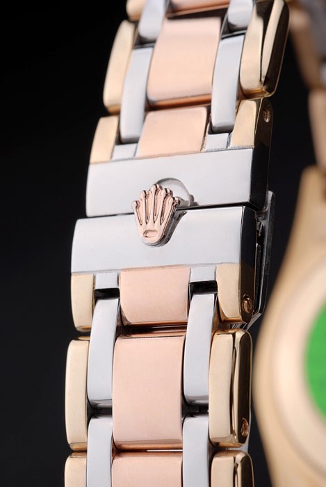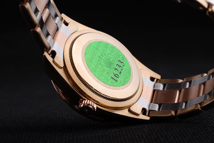 Zurück: 18K Gelbgold überzogenes Edelstahl-Steckgehäuseboden mit grünen Rolex-Logo stamp