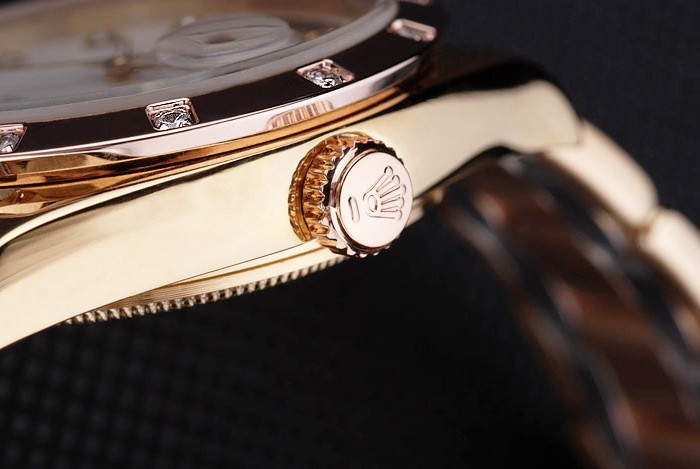 Krone: 18k Rose-Gold plattierten Stahl cutwork Krone mit Rolex logo