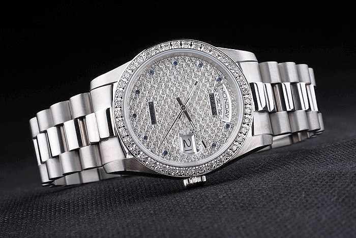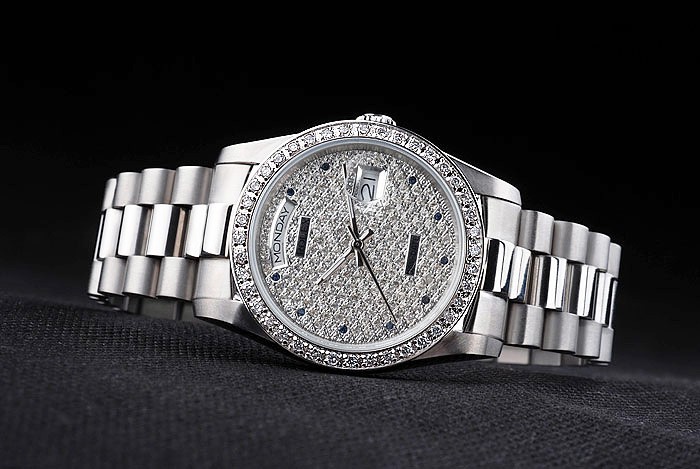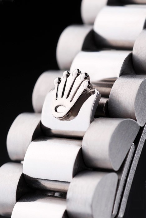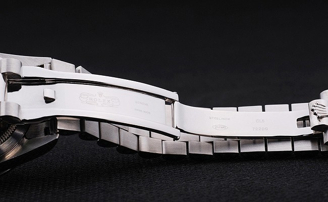 Armband: geschliffener und polierter Edelstahl-Gliederarmband mit Rolex Gravur versteckte Spange die Rolex logo