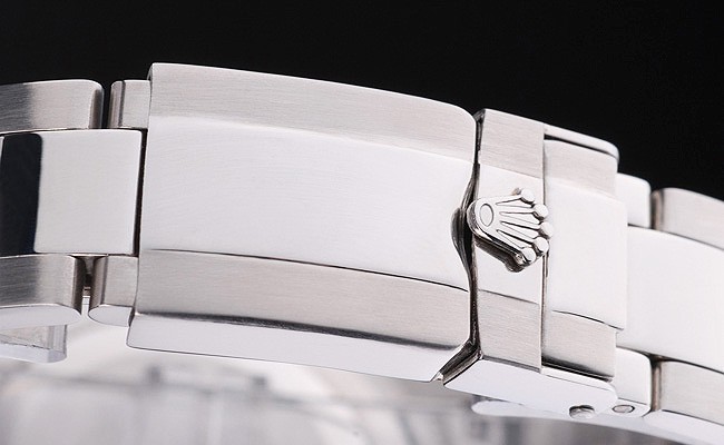 Armband: geschliffener und polierter Edelstahl-Gliederarmband mit Rolex Gravur Faltschließe die Rolex logo
