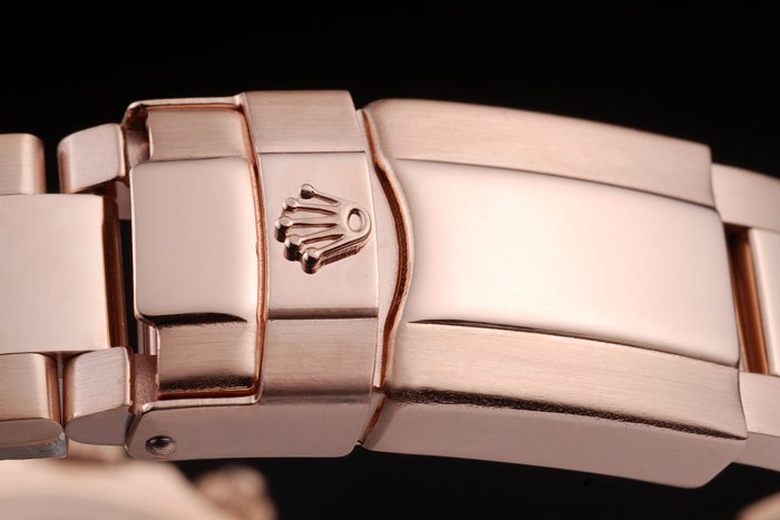 Krone: 18k Roségold cutwork Krone mit Rolex-logo und kleineren Kronen auf beiden Seiten des it