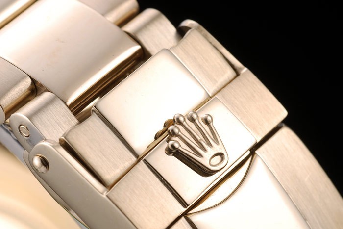 Armband: 18K Gelbgold Edelstahl-Gliederarmband mit gravierter Faltschließe mit Rolex-Logo plattiert top