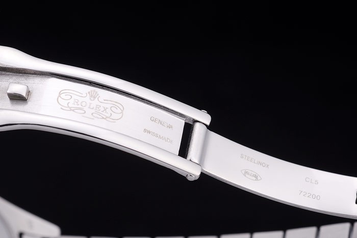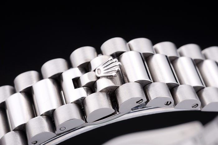 Armband: Poliertes Edelstahlgliederarmband mit Rolex-Logo Einsatz clasp