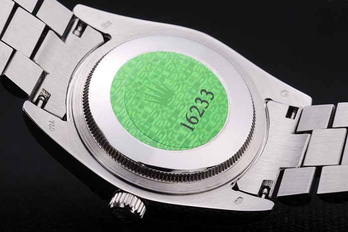 Rückseite: Edelstahl-Snap-In Rückseite mit grünen Rolex Authentizität sticker