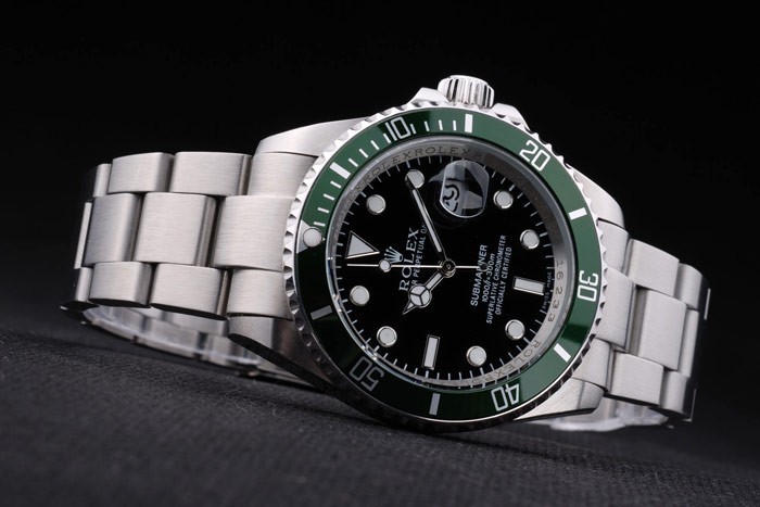 Rückseite: Edelstahl Push-Gehäuseboden mit grünen Rolex Gravur stamp