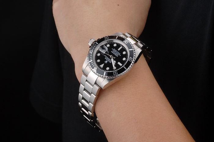 Armband: gebürstetes Edelstahl-Gliederarmband mit Rolex Gravur falten Verschluss der Rolex logo
