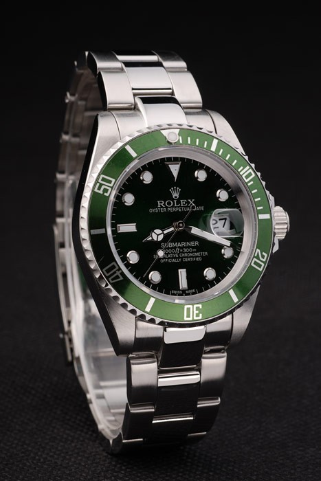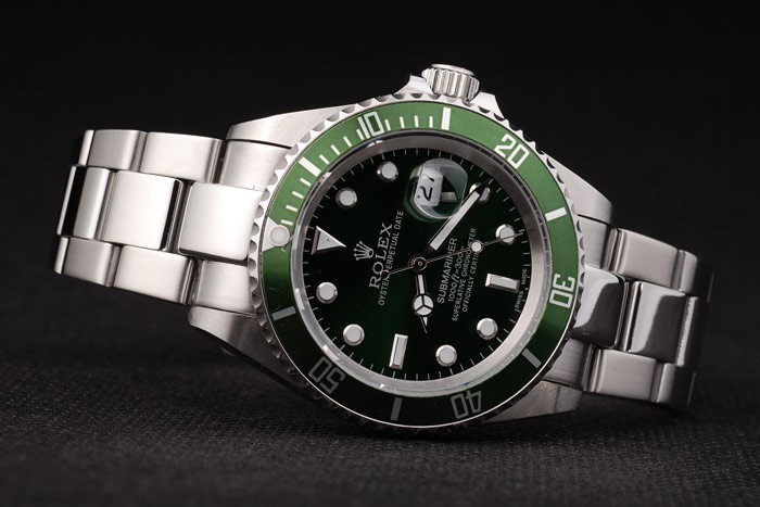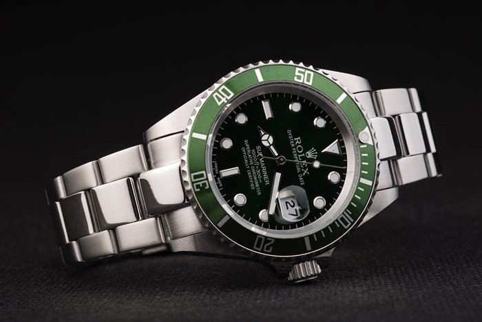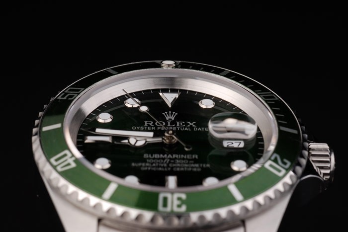 Back Bewegung: Push-in Edelstahl zurück mit grünen Rolex Aufkleber und markings
