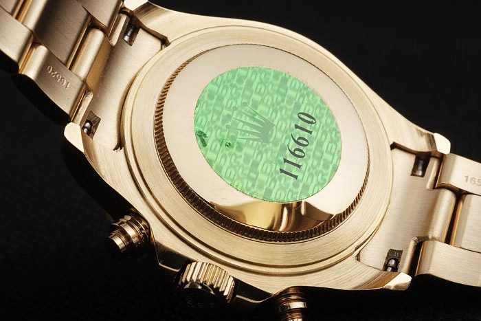 Zurück: Rose-Gold-Push-in-Rücken mit grünen Rolex-Logo stamp