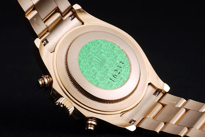 Zurück: Rose-Gold-Push-in-Rücken mit grünen Rolex-Logo stamp