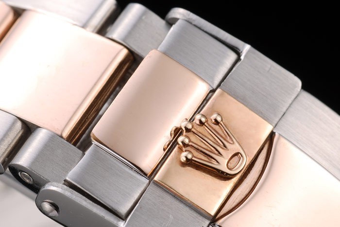 Krone: 18k-Rotgold cutwork Krone mit Rolex-logo und zwei kleinere auf entweder cutwork Druckknopf Kronen Seite it