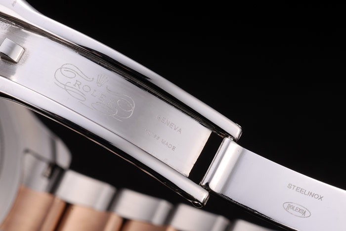 Armband: Rose-vergoldet und Edelstahl-Gliederarmband mit gravierter Faltschließe mit Rolex-Logo auf top